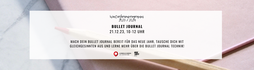 Mach dein Bullet Journal bereit für das neue Jahr, tausche dich mit Gleichgesinnten aus und lerne mehr über die Bullet Journal Technik! Du erhältst ein Bullet-Journal-Starter-Set inklusive Journal, Washi-Tapes, Sticker und vielem Mehr.