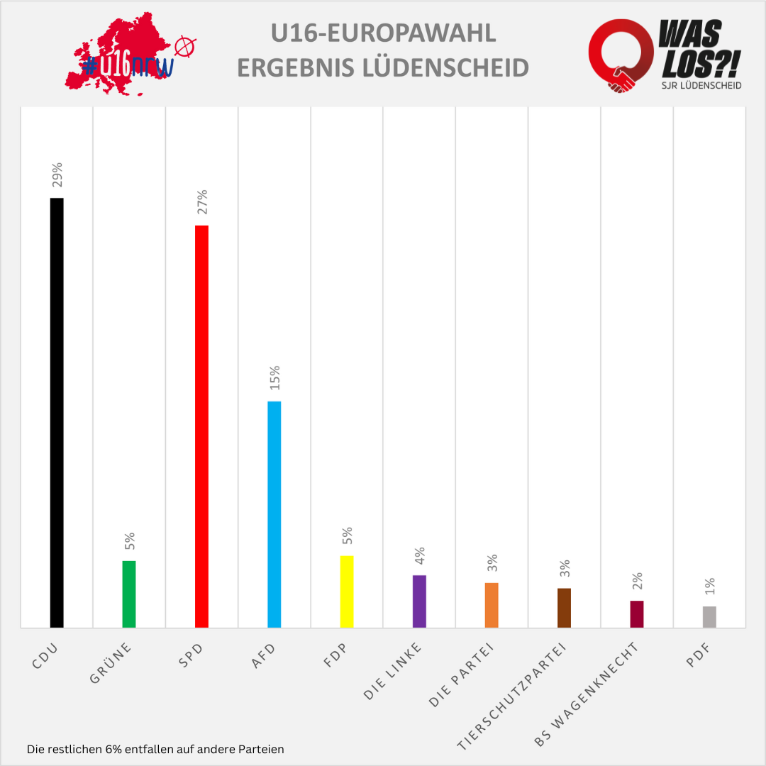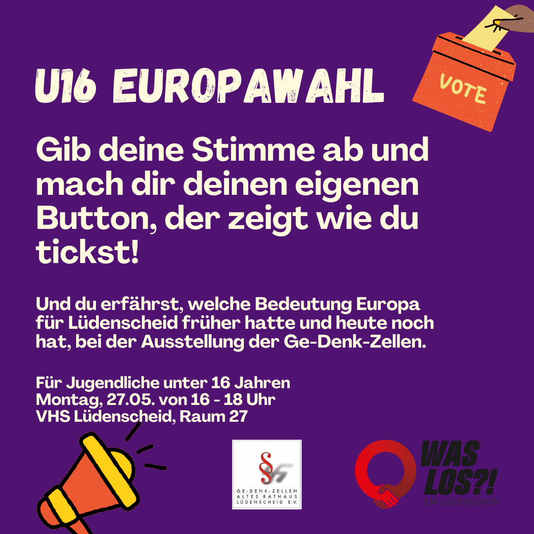 WAS LOS?! vom Stadtjugendring Lüdenscheid e. V. und die Ge-Denk-Zellen öffnen am 27.05.2024 ein U16-Wahllokal zur Europawahl.