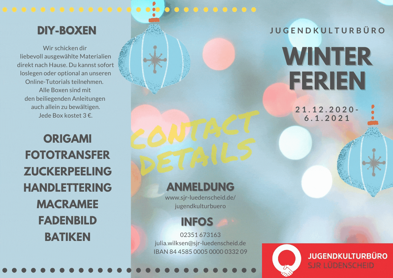 Für die Winterferien haben wir für euch sieben unterschiedliche Do It Yourself-Boxen und zwei Online-Spielenachmittage vorbereitet. Und so geht's: