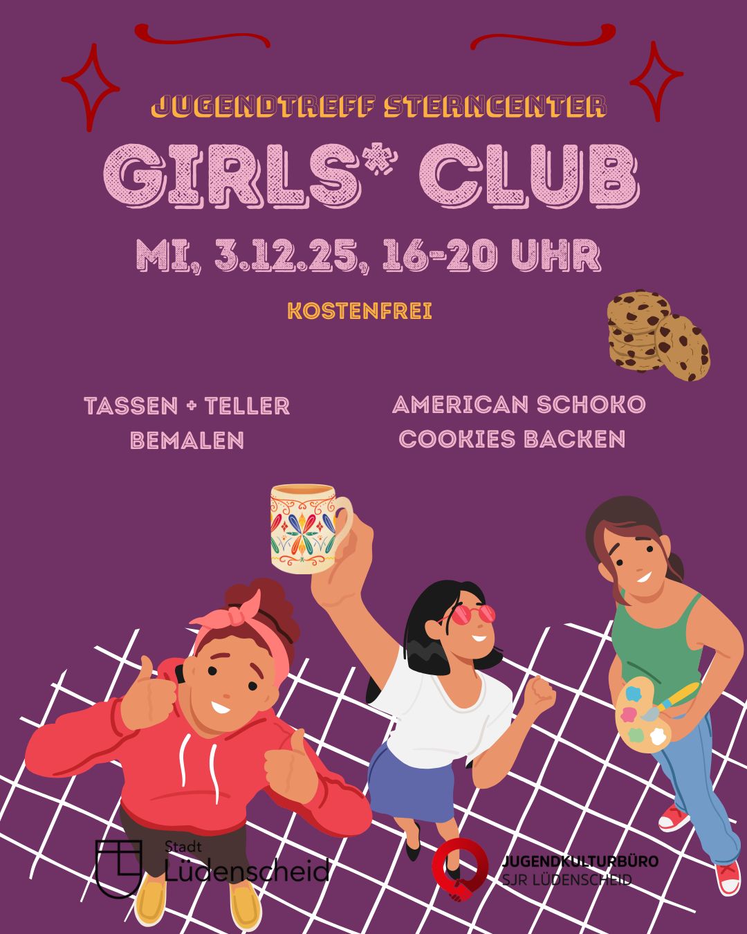 Der Girls* Club ist eine Veranstaltung von und für Mädchen*. Hier könnt ihr neue, nette Personen kennen lernen, Zeit miteinander verbringen, Spaß haben, kreative Dinge ausprobieren und leckere Sachen snacken.