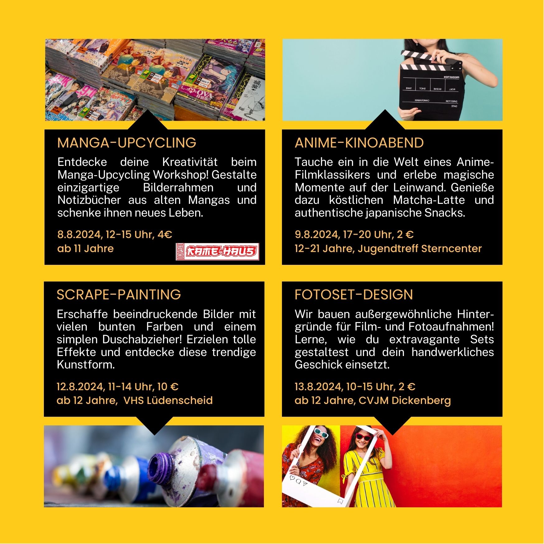 Die letzten Klausuren sind geschrieben und die Sommerferien stehen vor der Tür! Wenn du Lust auf tolle Aktionen, Workshops und Freizeiten hast, nette Menschen kennenlernen und Eindrücke sammeln willst, ist unser Ferienprogramm vielleicht genau das Richtige für dich und deine Freund*innen.